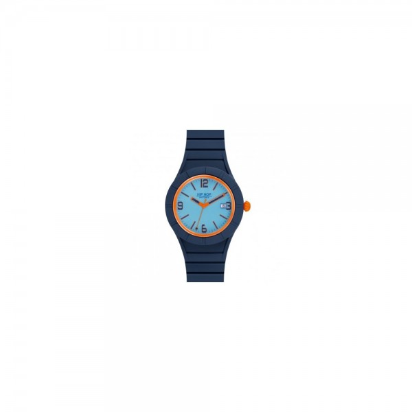Orologio solo tempo da uomo di Hip Hop della collezione x man 3. 0 denim blue. Orologio a tre lancette con cassa 42 mm. Movimento 3h con datario tmi vj42. Il quadrante è celeste con luminous sfere e indici arancione e blu. Il cinturino è in silicone. La resistenza all'acqua è di 5 atm.