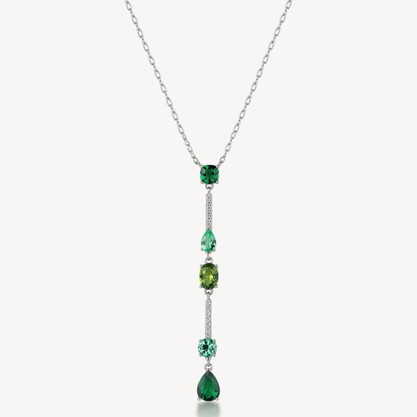 Collana girocollo della collezione Brosway Fancy da donna. Colore: argento e verde. Il gioiello è in argento rodiato 925‰ ed è caratterizzato da un filo pendente centrale impreziosito da zirconi di colore verde con diverso taglio e zirconi bianchi. Lunghezza 43 cm con chiusura a moschettone.